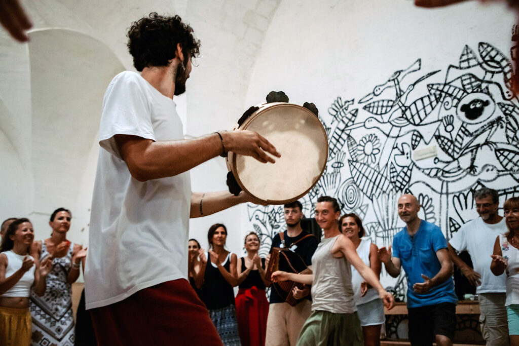 Les ateliers proposent une exploration de la pizzica, danse traditionnelle du Sud de l’Italie et plus précisément une des tarentelles de la région des Pouilles, dans le contexte plus large des danses traditionnelles de la Méditerranée. Plusieurs aspects seront mis en évidence : la technique, le rythme, les dimensions individuelle, relationnelle et émotionnelle.
