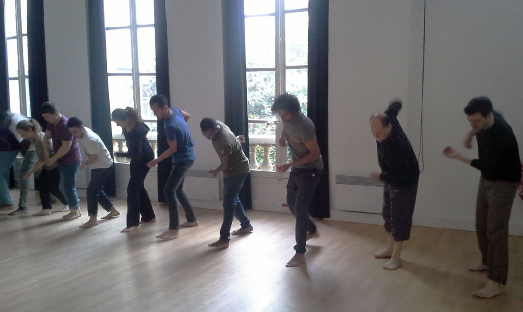 Une « courbe » se construira ainsi, depuis la simplicité des premiers exercices du corps, jusqu’à la complexité du jeu au plateau. Les exercices seront individuels ou collectifs. On travaillera sans instrument de musique, si ce n’est une simple percussion. Tout le « corps-esprit » de l’acteur sera sollicité pour lâcher prise, et apprivoiser une rigueur et une conscience rythmique qui permettent de donner à la fois plus de densité et plus de liberté au jeu, à la parole, au rapport à l’espace, et un vrai rapport au silence.