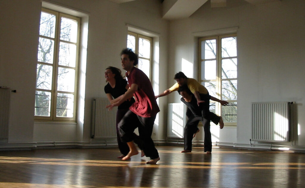 L’écoute est le pilier qui soutient l’ensemble du travail. Elle est perçue ici non pas uniquement comme l’accomplissement ou le résultat d’un mouvement de l’extérieur vers l’intérieur, un « se laisser traverser par », mais aussi – par opposition, et donc, dans une tension féconde et permanente – comme un mouvement de l’intérieur vers l’extérieur, une traversée active de l’espace et de l’autre. C’est précisément la tension créée entre ces deux mouvements qui génère un état de pleine présence, une potentialité créative de/dans l’instant présent partagé et concret qui, même en l’absence de sons « audibles » rend même le silence palpable.