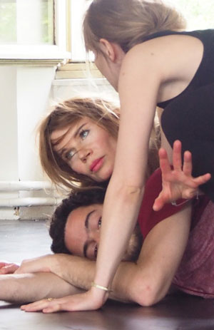 - le travail de l’écoute (interne et externe ; individuelle et collective), socle indispensable au jeu de l’acteur – résolument inscrite dans le présent de la scène et de l’action – et garant de la qualité de son interaction avec l’objet (texte, chant, canevas), avec l’autre, avec l’espace ;